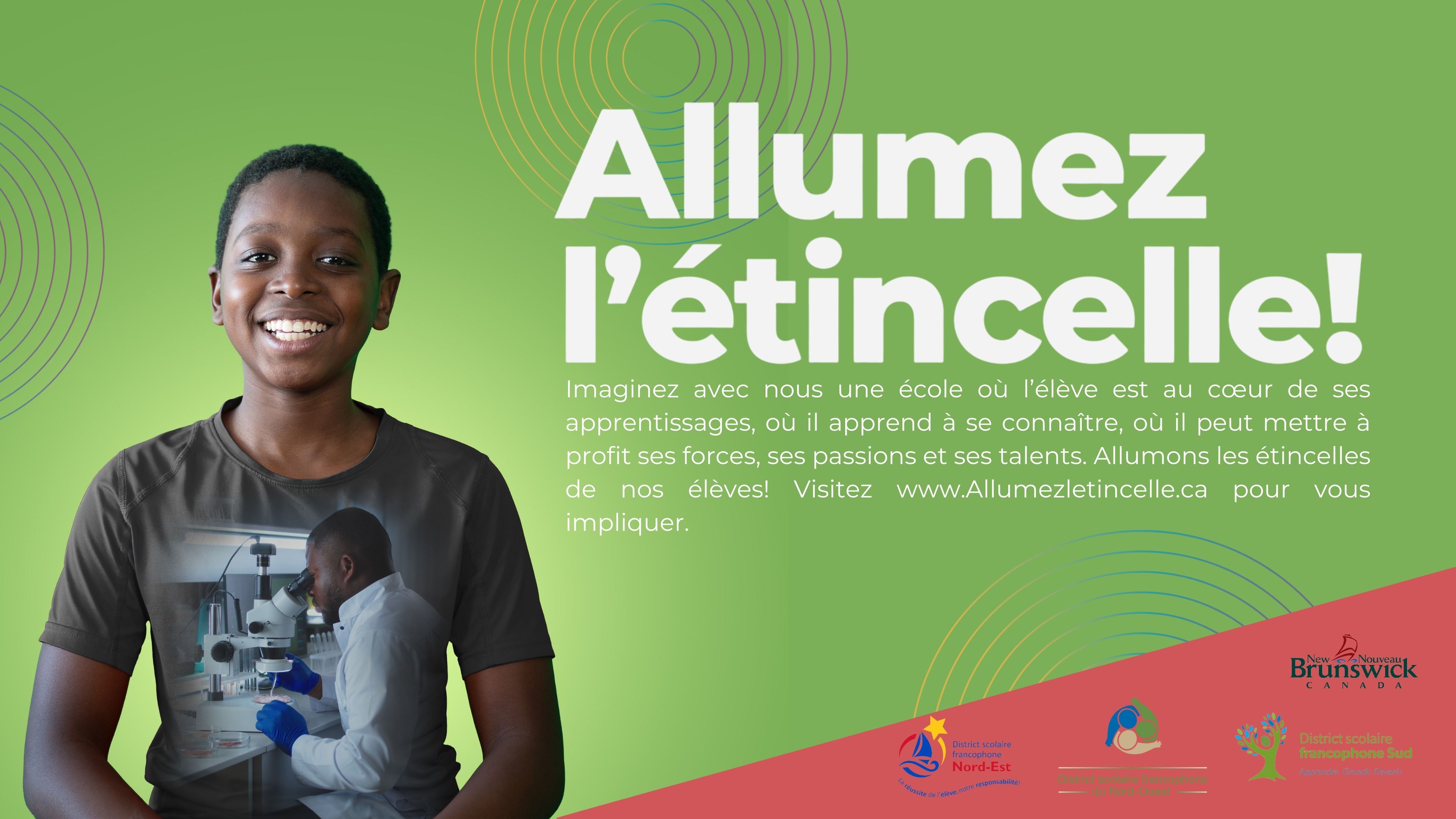 Le secteur francophone du ministère de l’Éducation et du Développement de la petite enfance a lancé, aujourd’hui, la campagne « Allumez l’étincelle » à l’école communautaire L’Étincelle de Sainte-Marie-Saint-Raphaël. Le District scolaire francophone Sud (DSFS) était représenté par madame Nathalie Kerry, directrice exécutive à l’apprentissage, qui était présente à l’événement tenu plus tôt aujourd’hui.